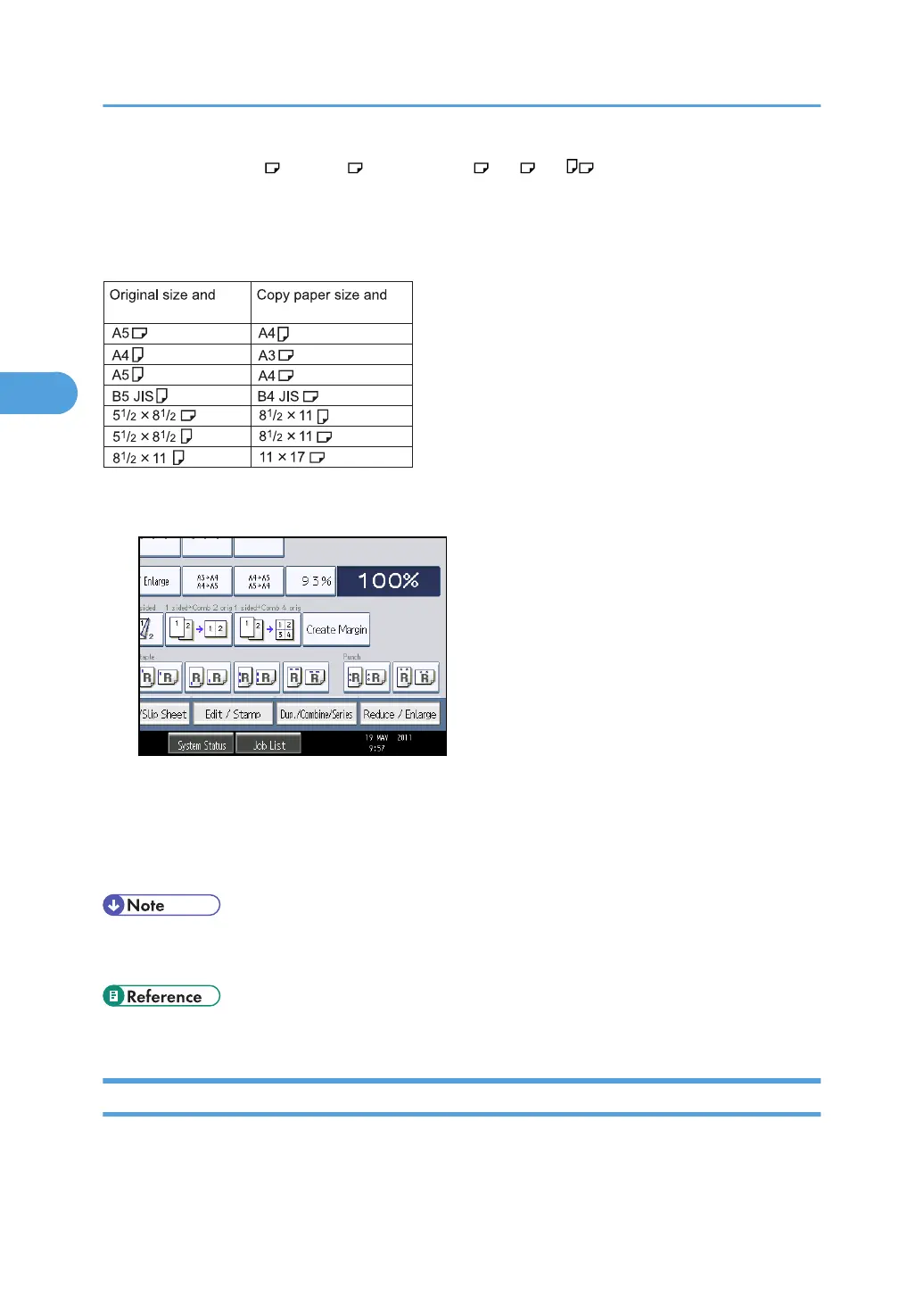 See the following table for original and copy paper sizes when using a 100% ratio: