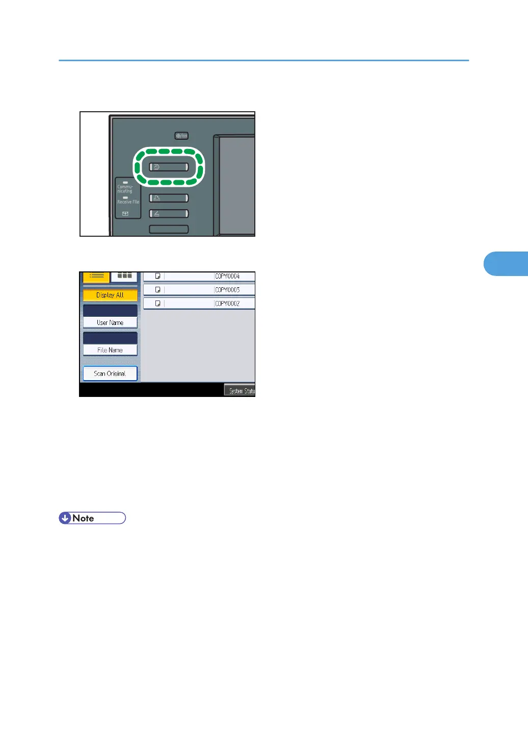 • After scanning, a list of stored documents will be displayed. If the list does not appear, press [Finish