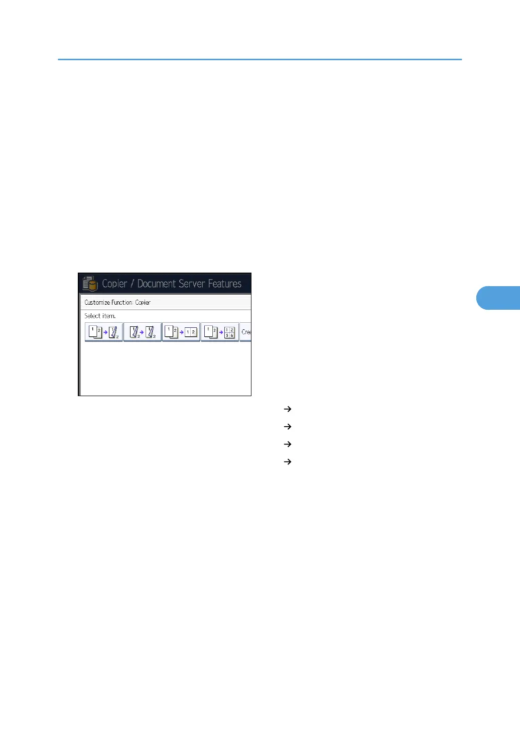 You can assign up to six frequently-used functions for scanning documents on the Document Server