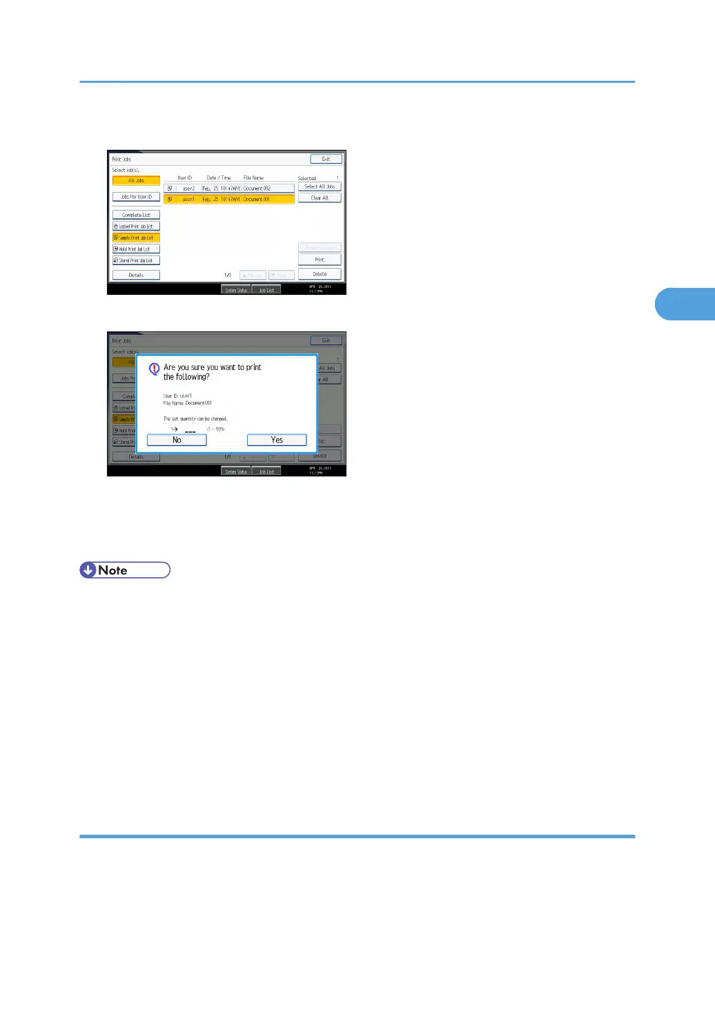 • If you select multiple documents and do not specify the number of sets on the confirmation screen,