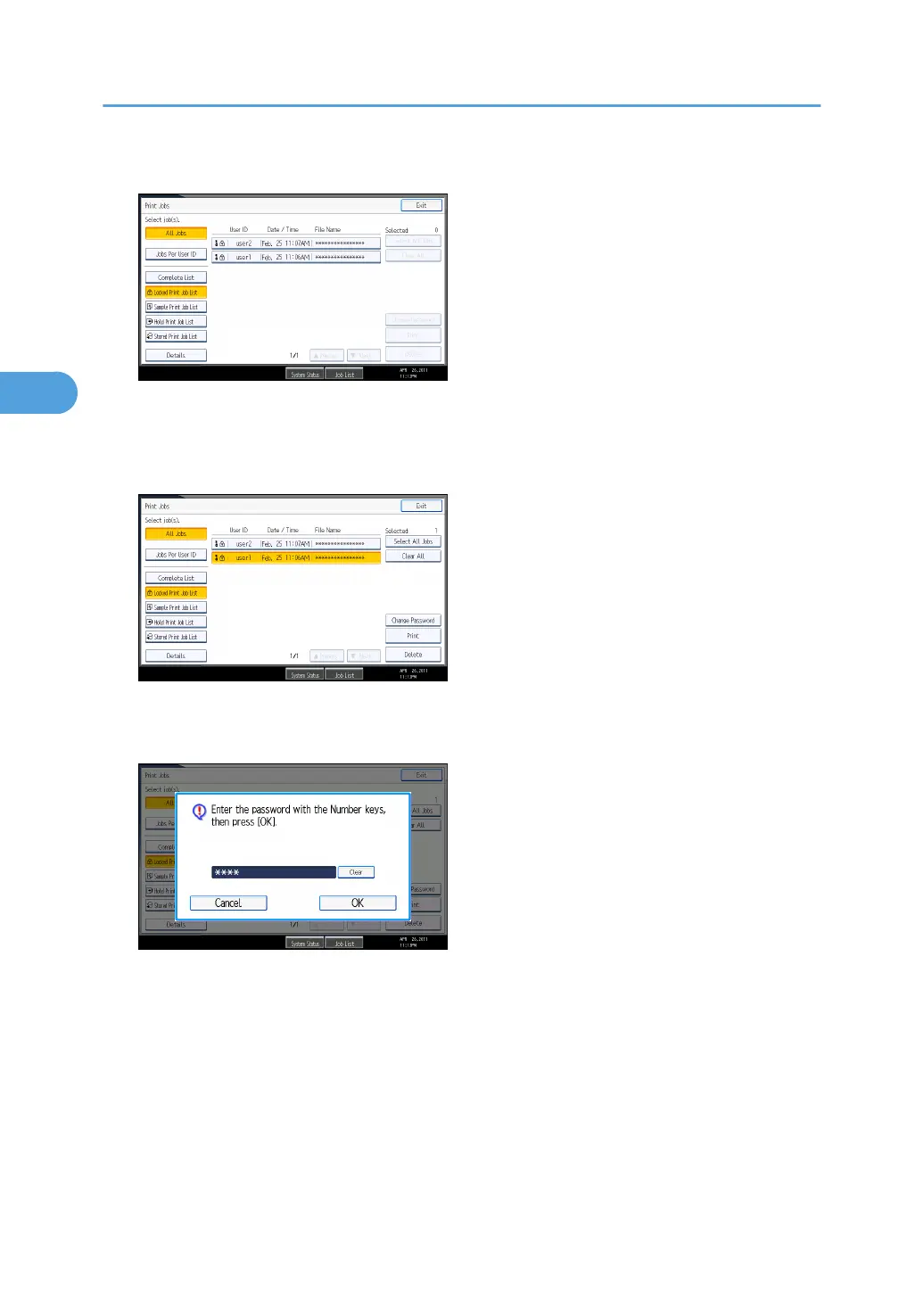 If multiple print files are selected, the machine prints files that correspond to the entered password.
