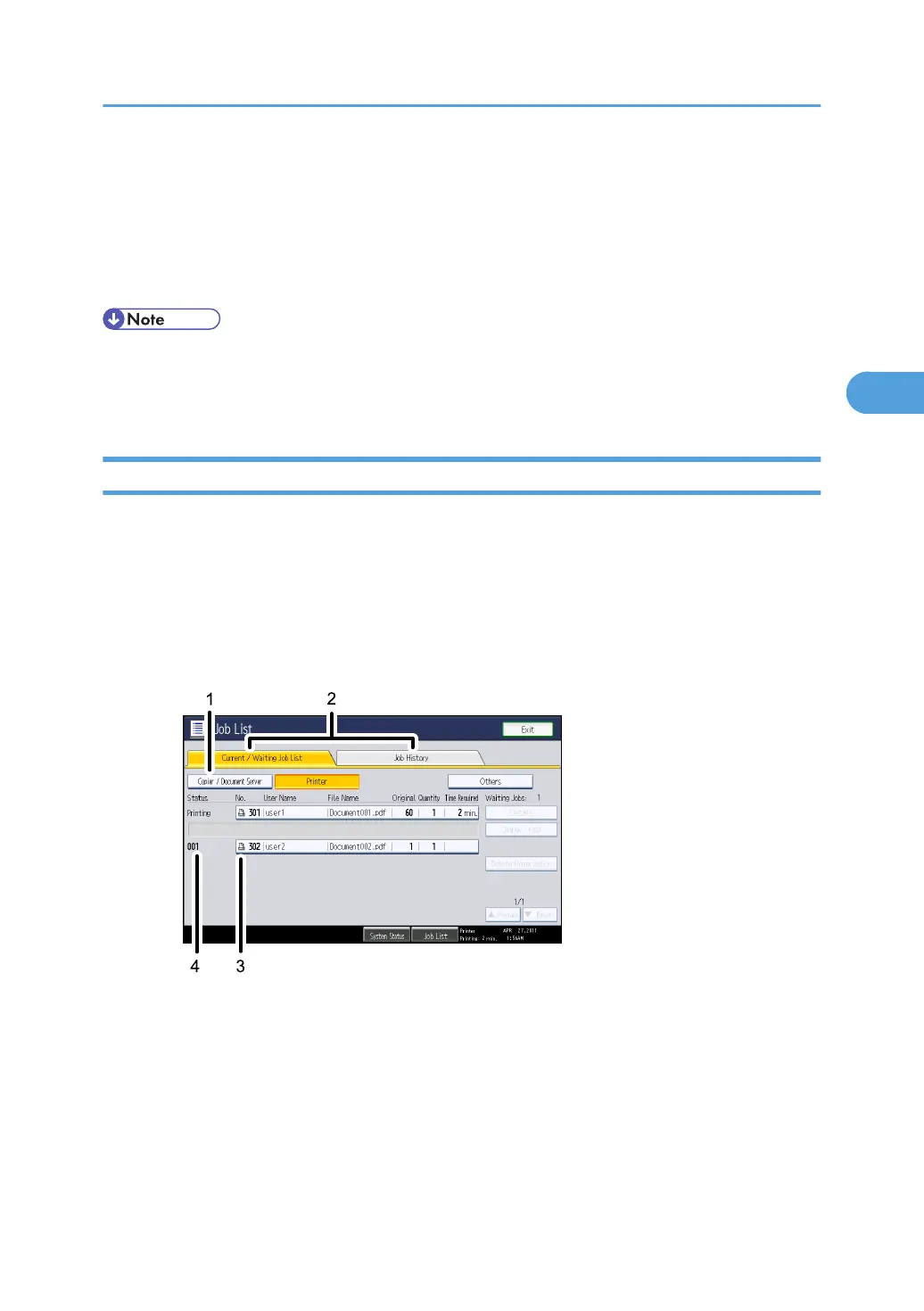 • You cannot use the Job List function when the machine is in Interrupt mode.