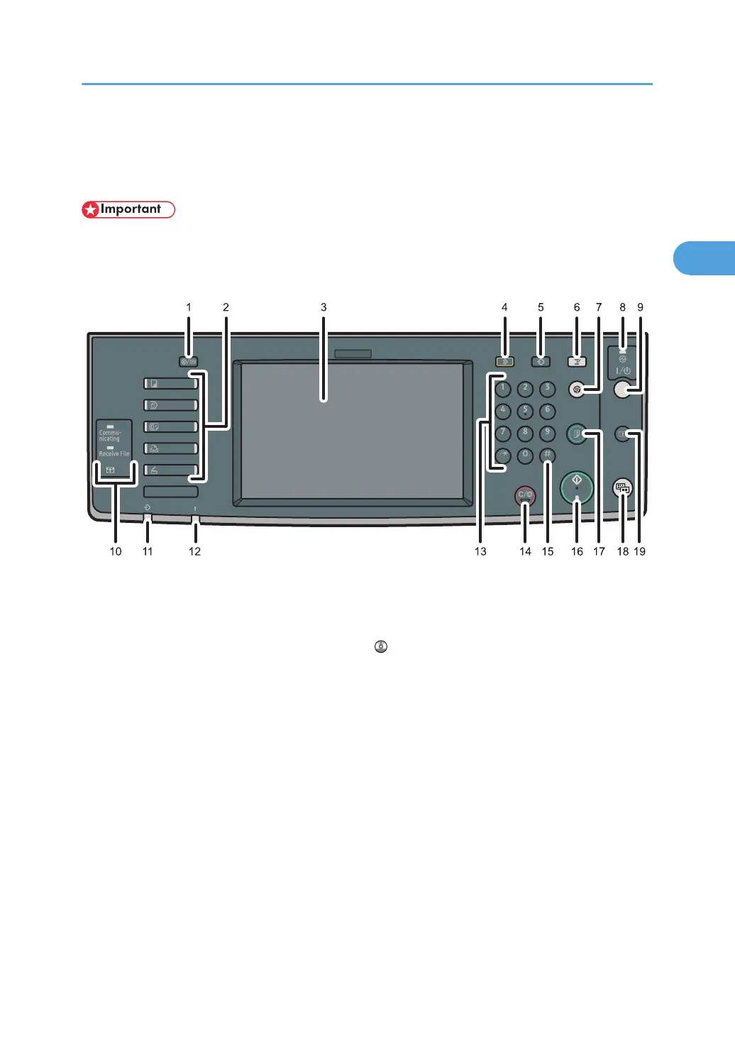 Press to display the operation screen of one of the following functions: copy, Document Server, facsimile,