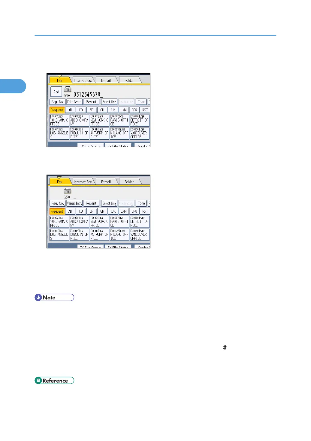 Press the transmission type tab to switch the transmission type between fax/IP-Fax, Internet Fax, e-
