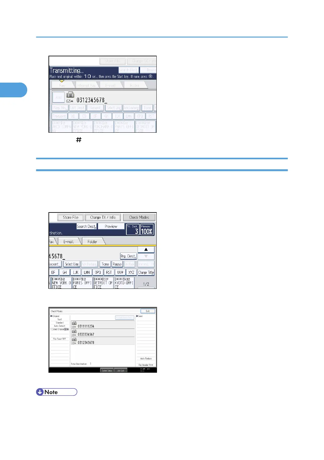 1. Press [Check Modes], and then check the transmission settings.