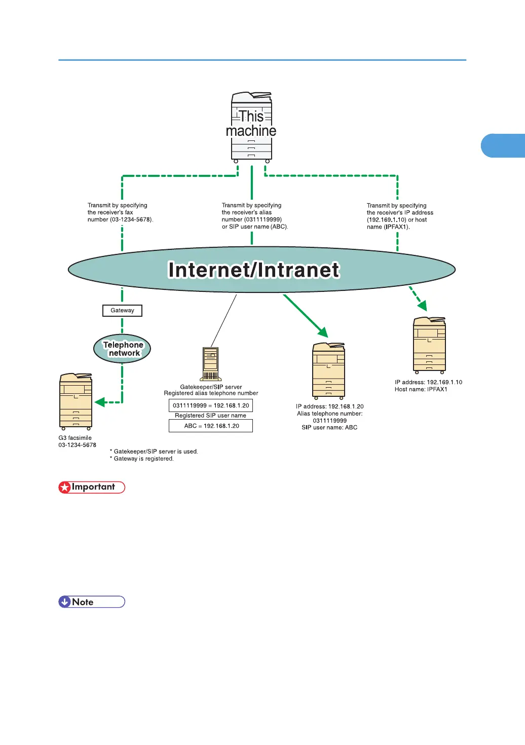 • IP-Fax supported by this machine is ITU-T Recommendation T.38 compliant.