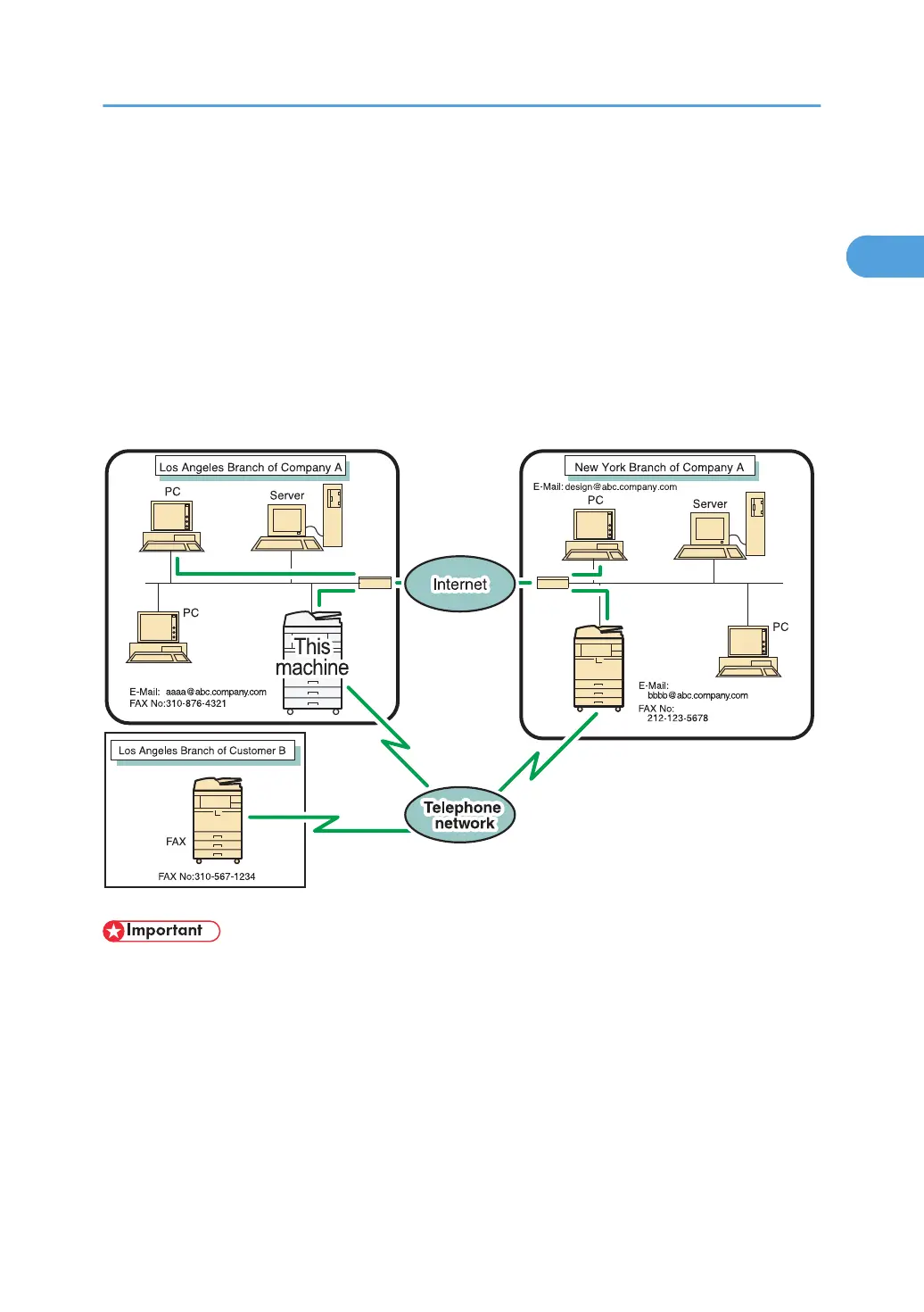 To send to e-mail destinations, this machine must be connected to a LAN and set up correctly in