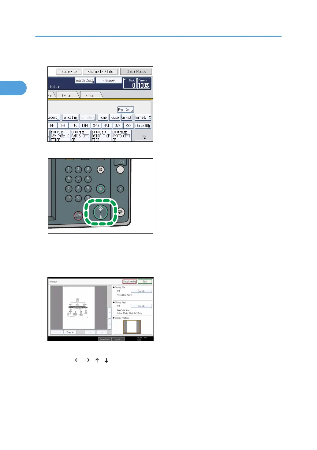 3. Specify the destination, and then press the [Start] key.