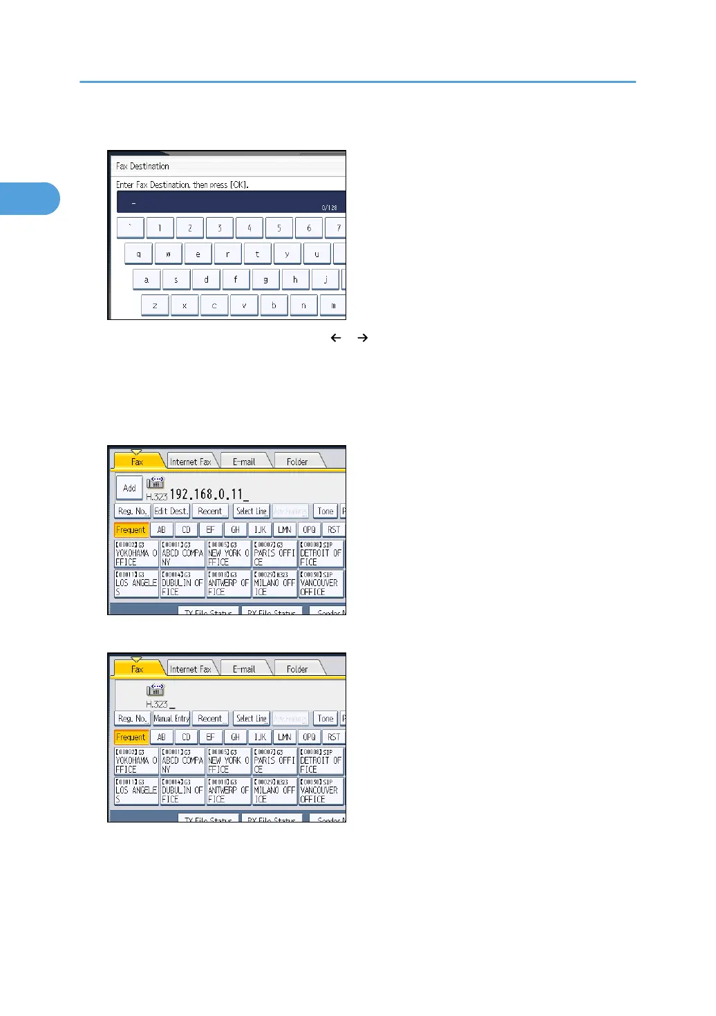 Press the transmission type tab to switch the transmission type between fax/IP-Fax, Internet Fax, e-