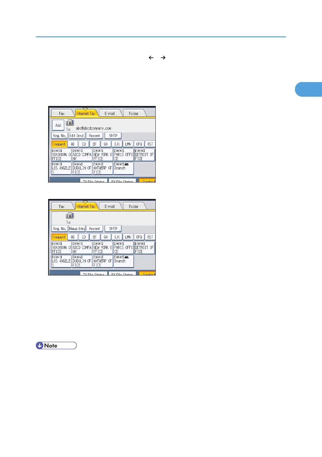 Press the transmission type tab to switch the transmission type between fax/IP-Fax, Internet Fax, e-