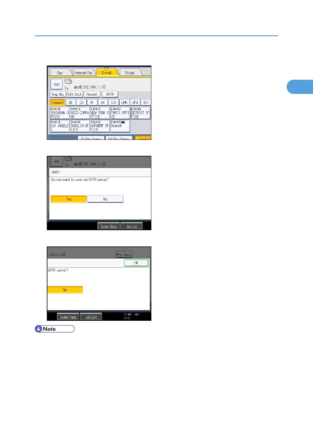 If you use the destination list to select the destinations, the SMTP server setting specified in the