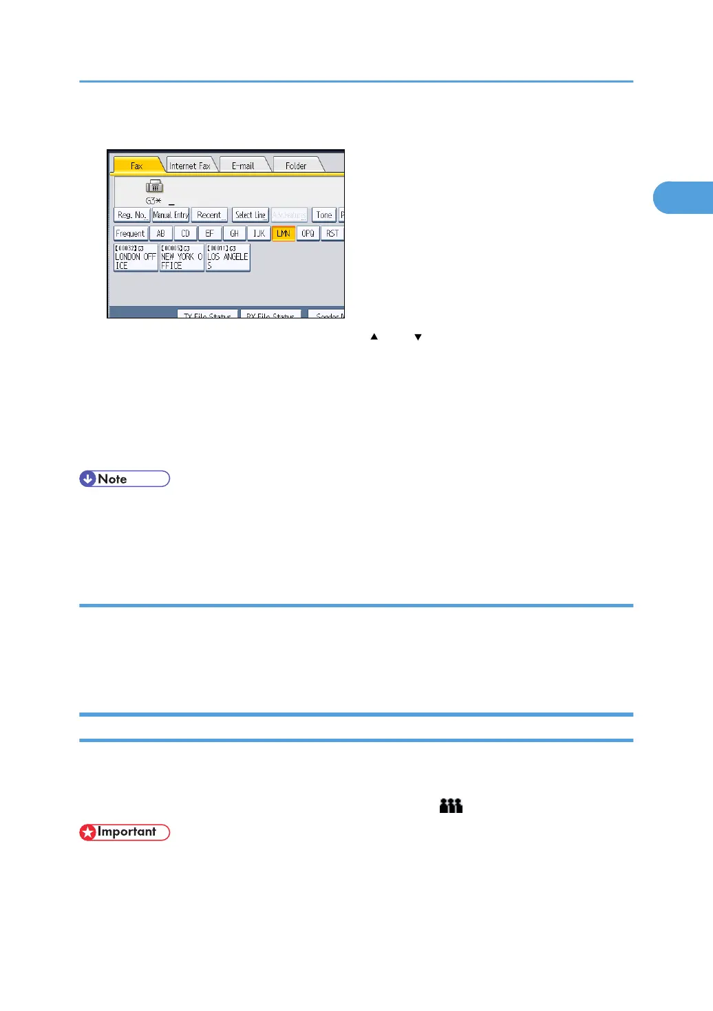 • In the destination list, program groups in advance. For details about programming destinations, see