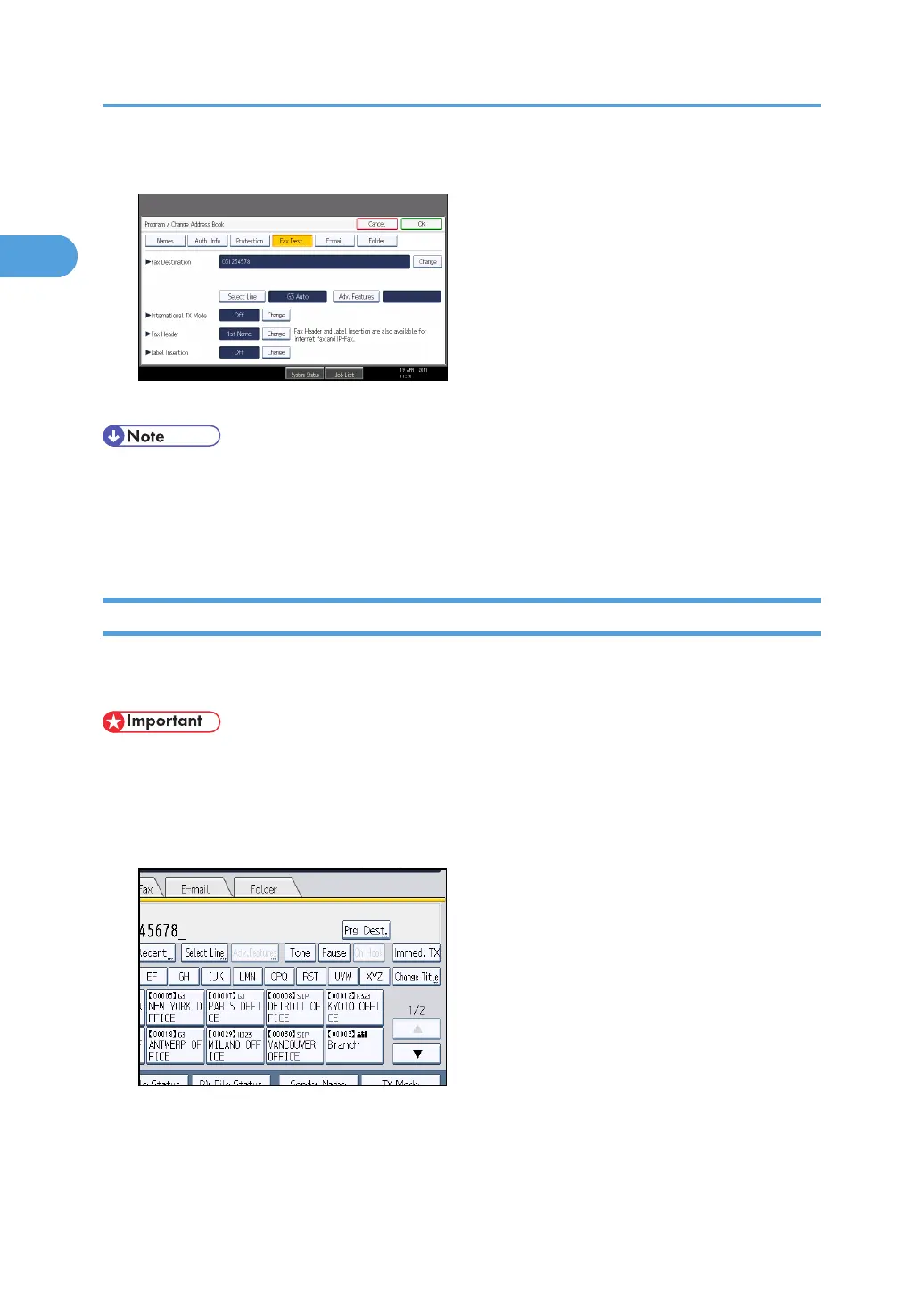 This section explains how to register a directly entered fax number, IP-Fax destination, Internet Fax