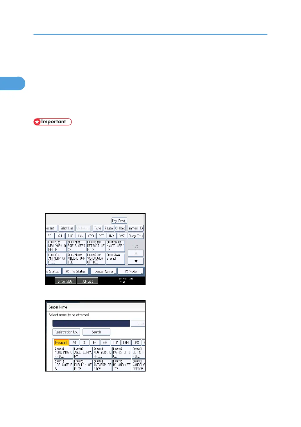 both [Sender] and [Destination]. For details about these settings, see “Registering Addresses and