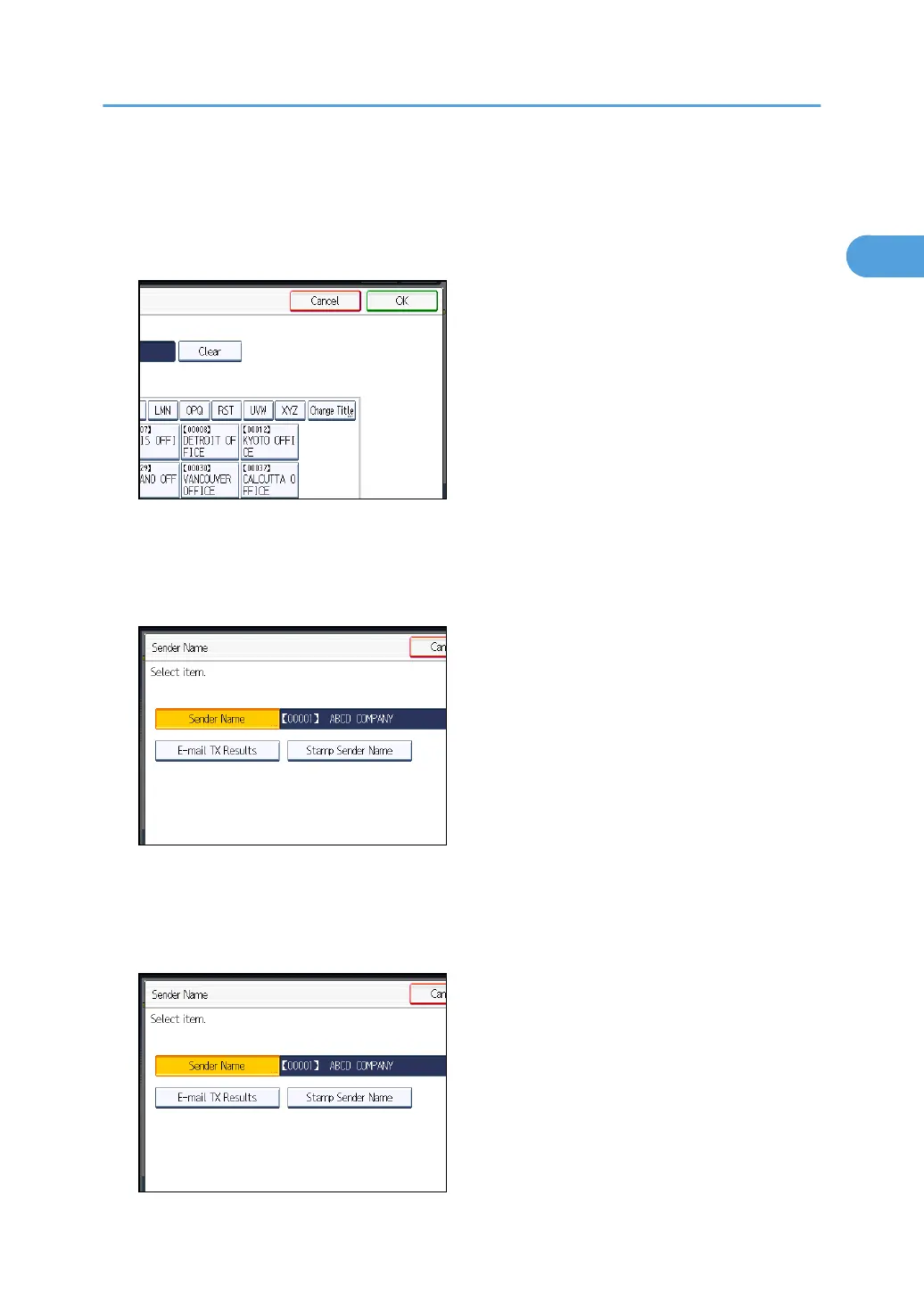 5. To print the sender's name on the receiver's sheet, press [Stamp Sender Name] to