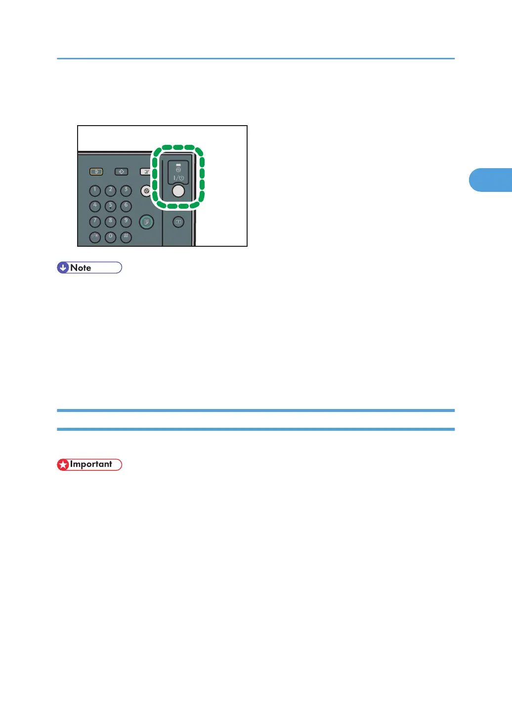• Do not turn off the main power switch when the operation switch indicator is lit or blinking. Doing so
