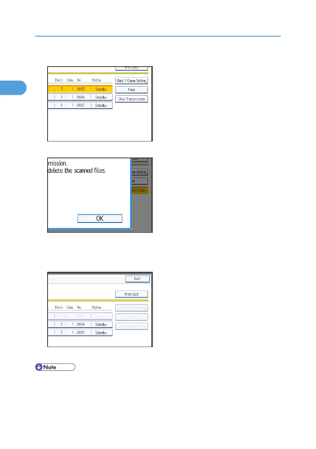 To cancel stopping transmission, press [Cancel].