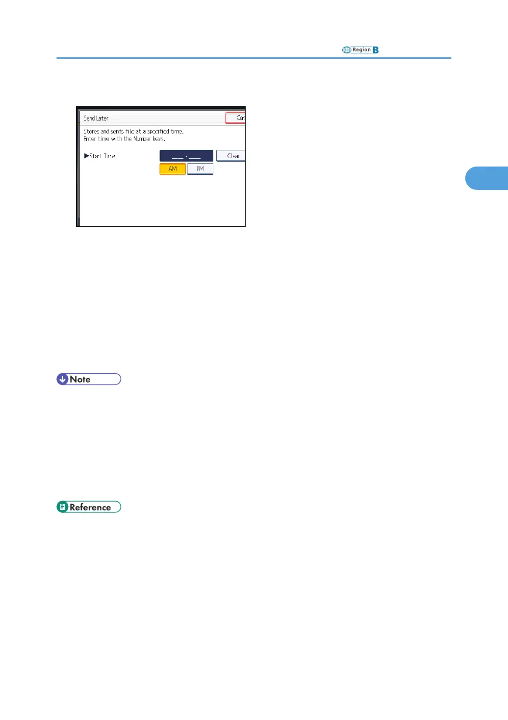• You can cancel the transmission setup for Send Later. See “Canceling a Transmission”.