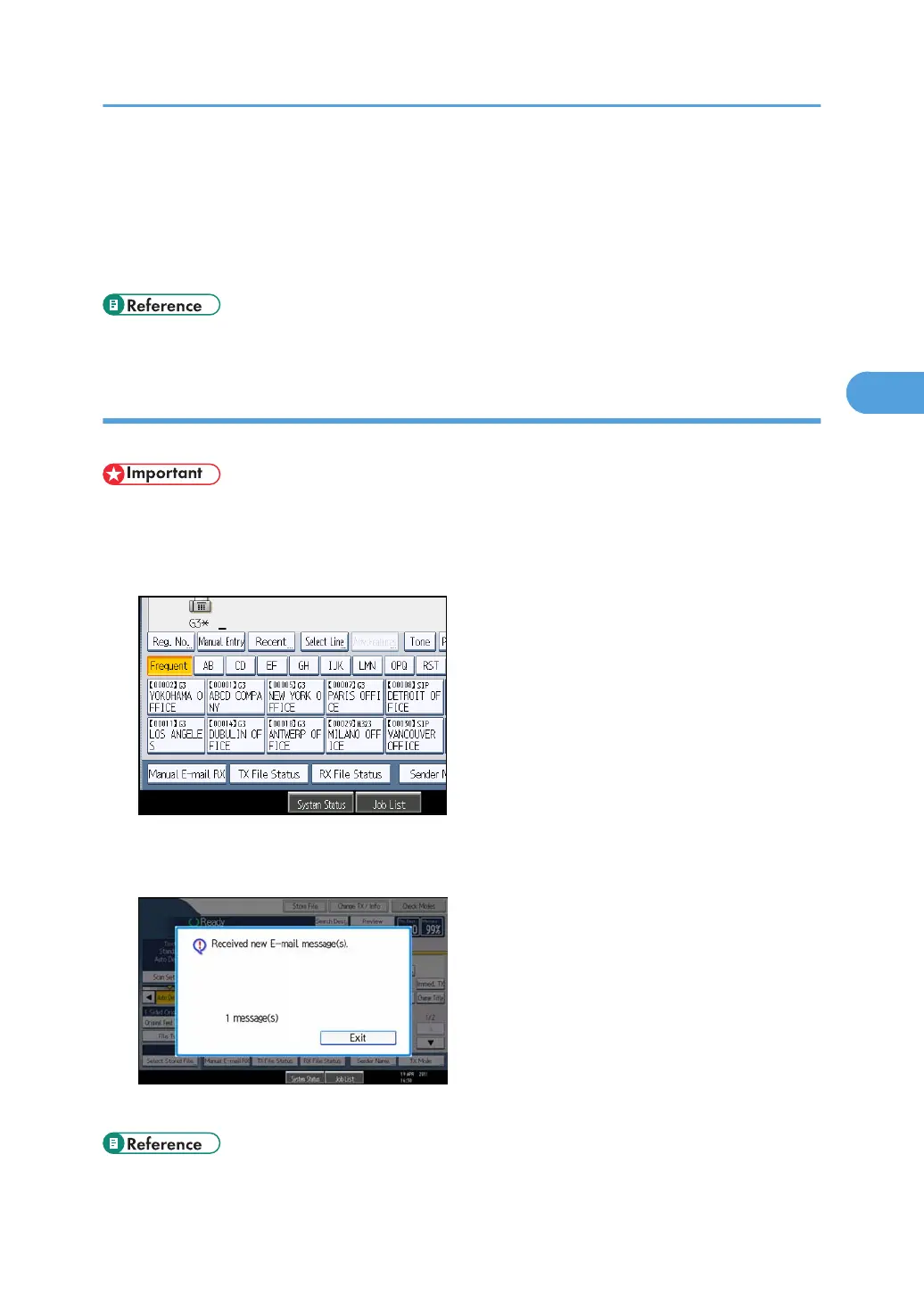 E-mail can also be received manually. For details about the manual reception, see “Manual e-mail