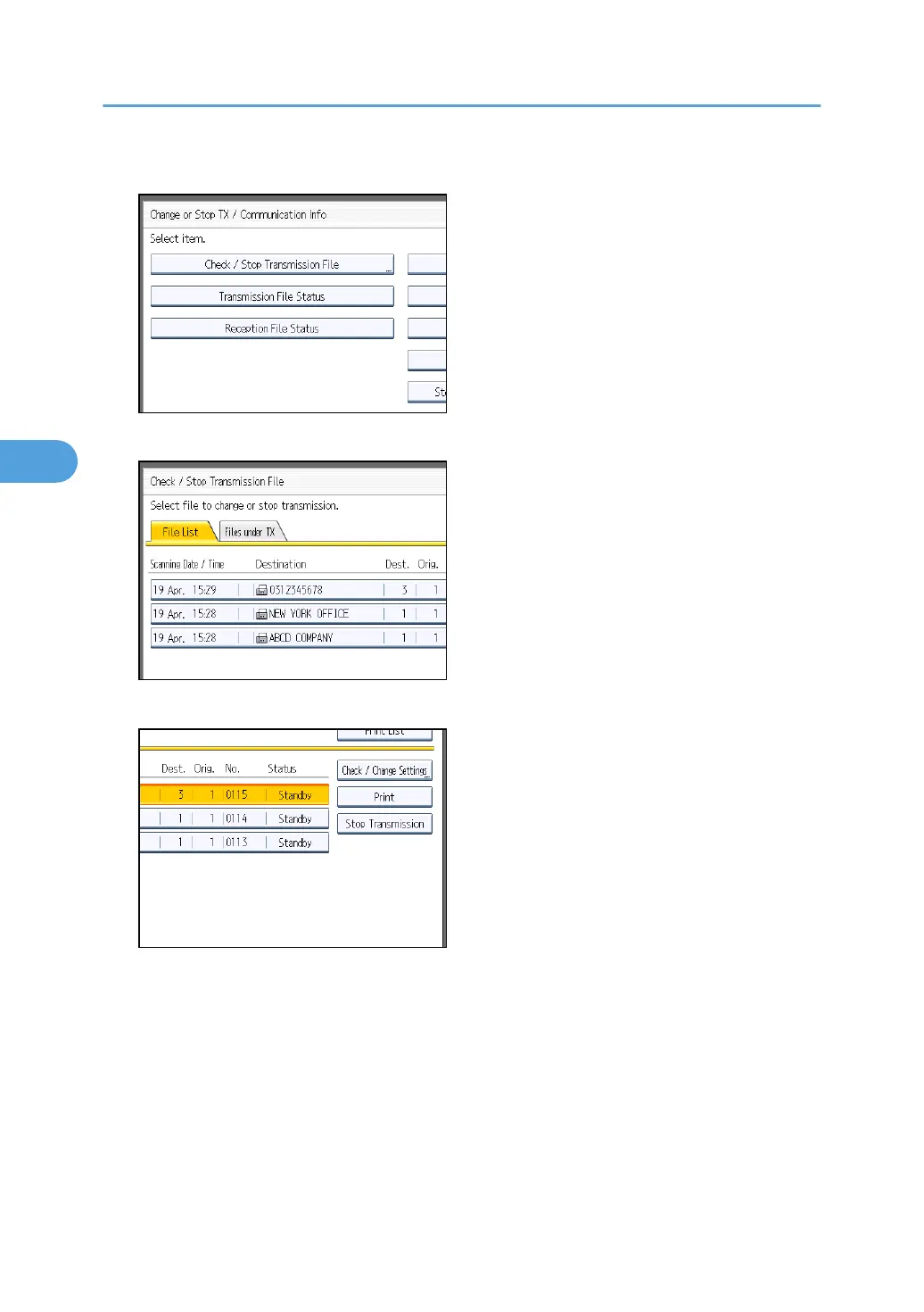 2. Press [Check / Stop Transmission File].