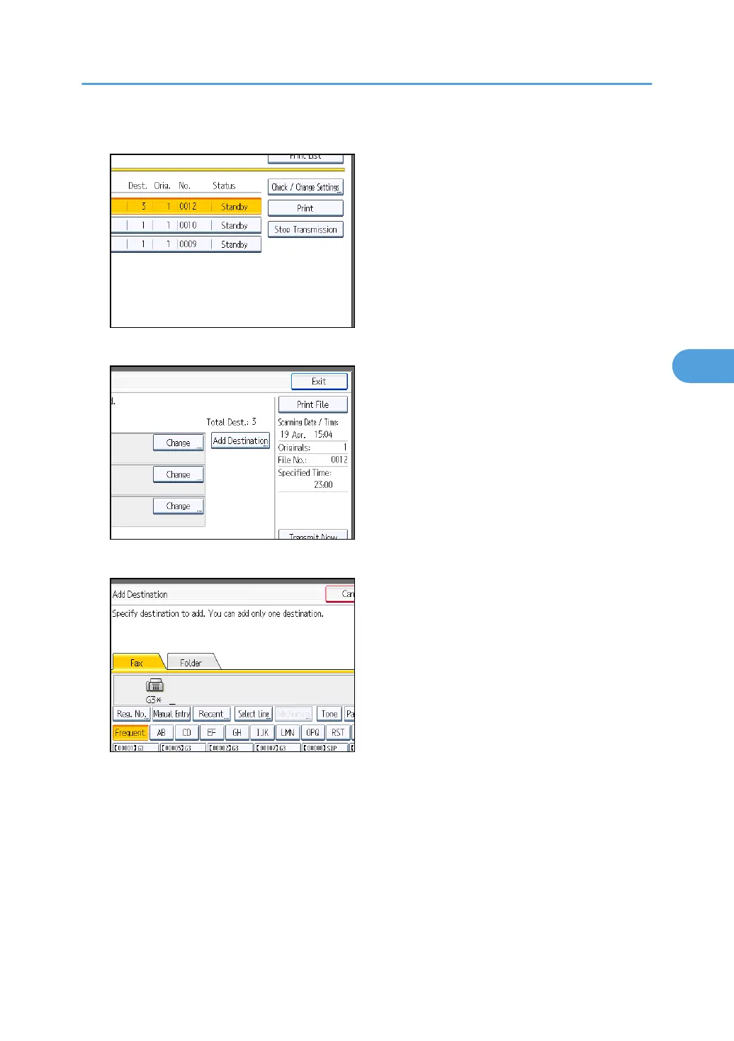 Press the transmission type tab to switch the transmission type between fax/IP-Fax, Internet Fax, e-