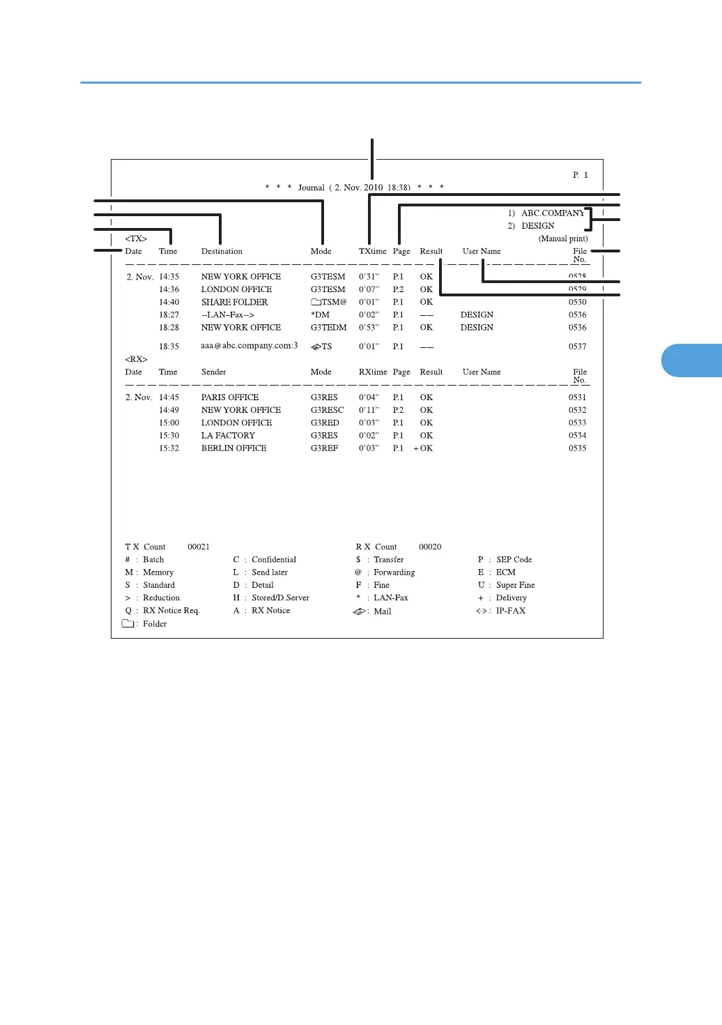 Shows the programmed fax number if the name (for display) was not programmed. The fax number may