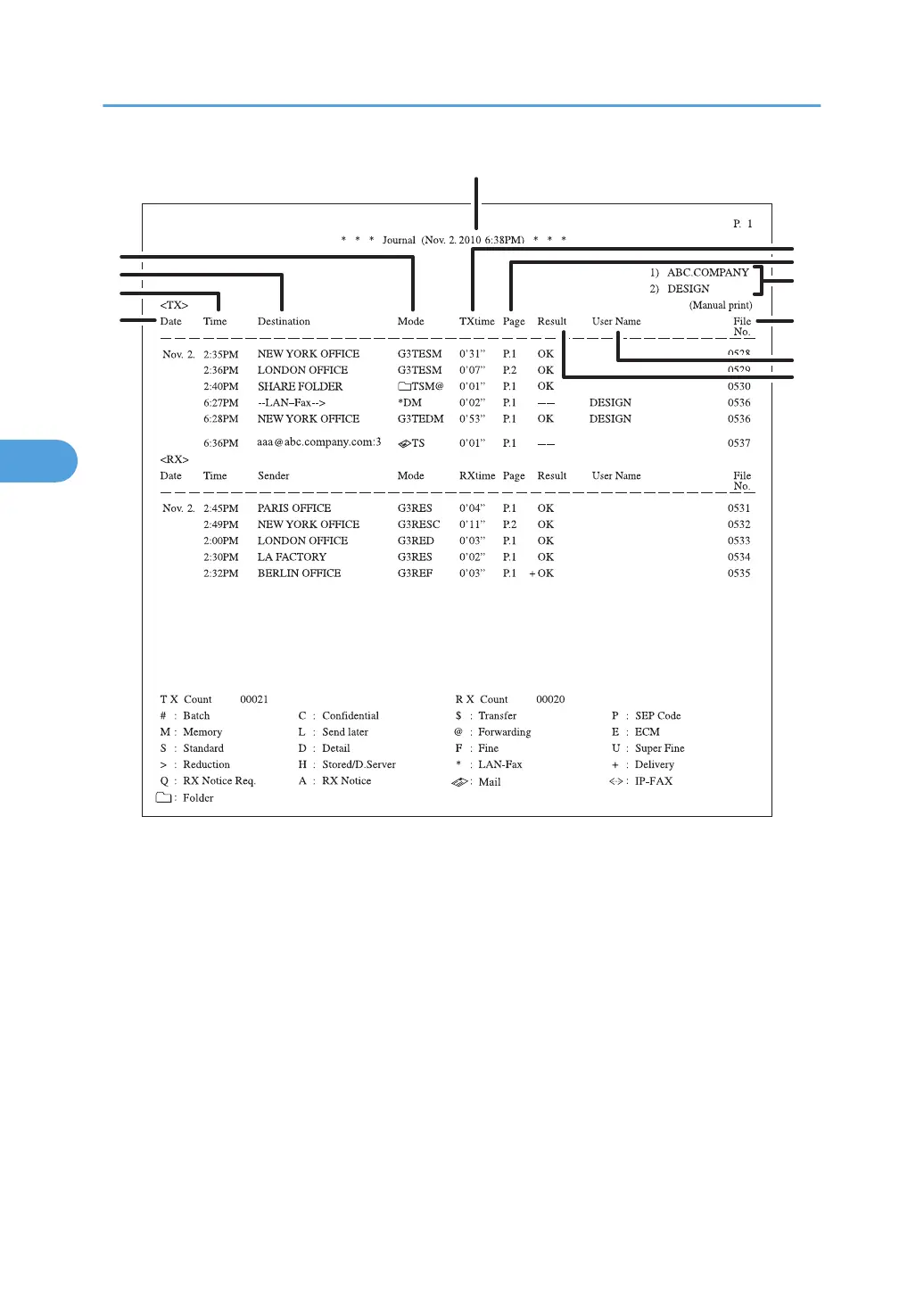 Shows the programmed fax number if the name (for display) was not programmed. The fax number may