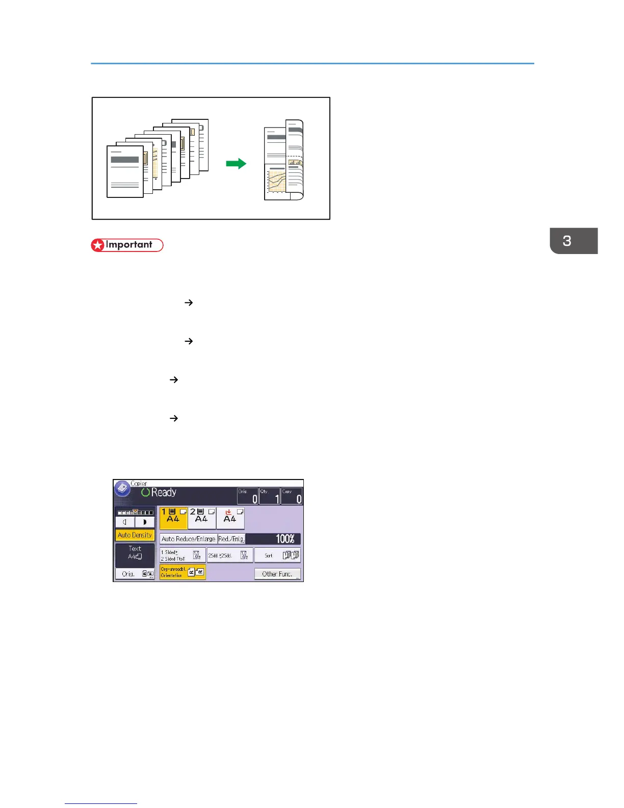 Copies eight 1-sided originals to one sheet with four pages per side.