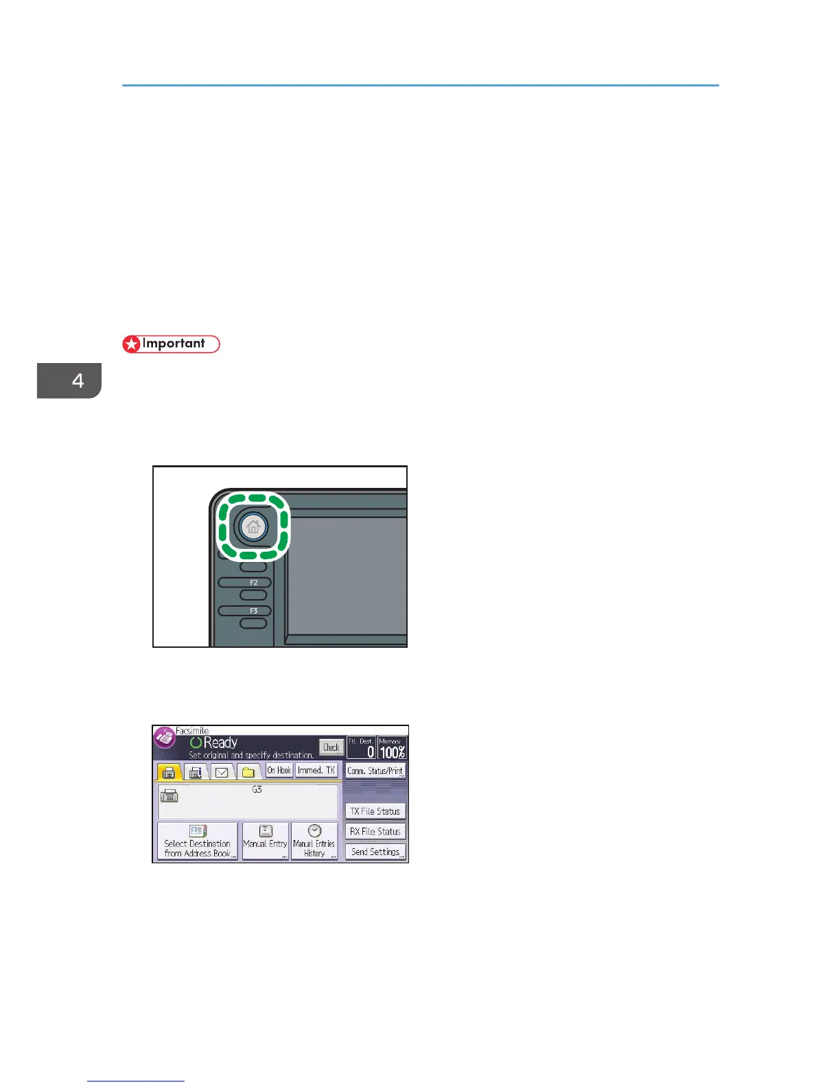 1. Press the [Home] key on the top left of the control panel, and press the [Facsimile] icon on