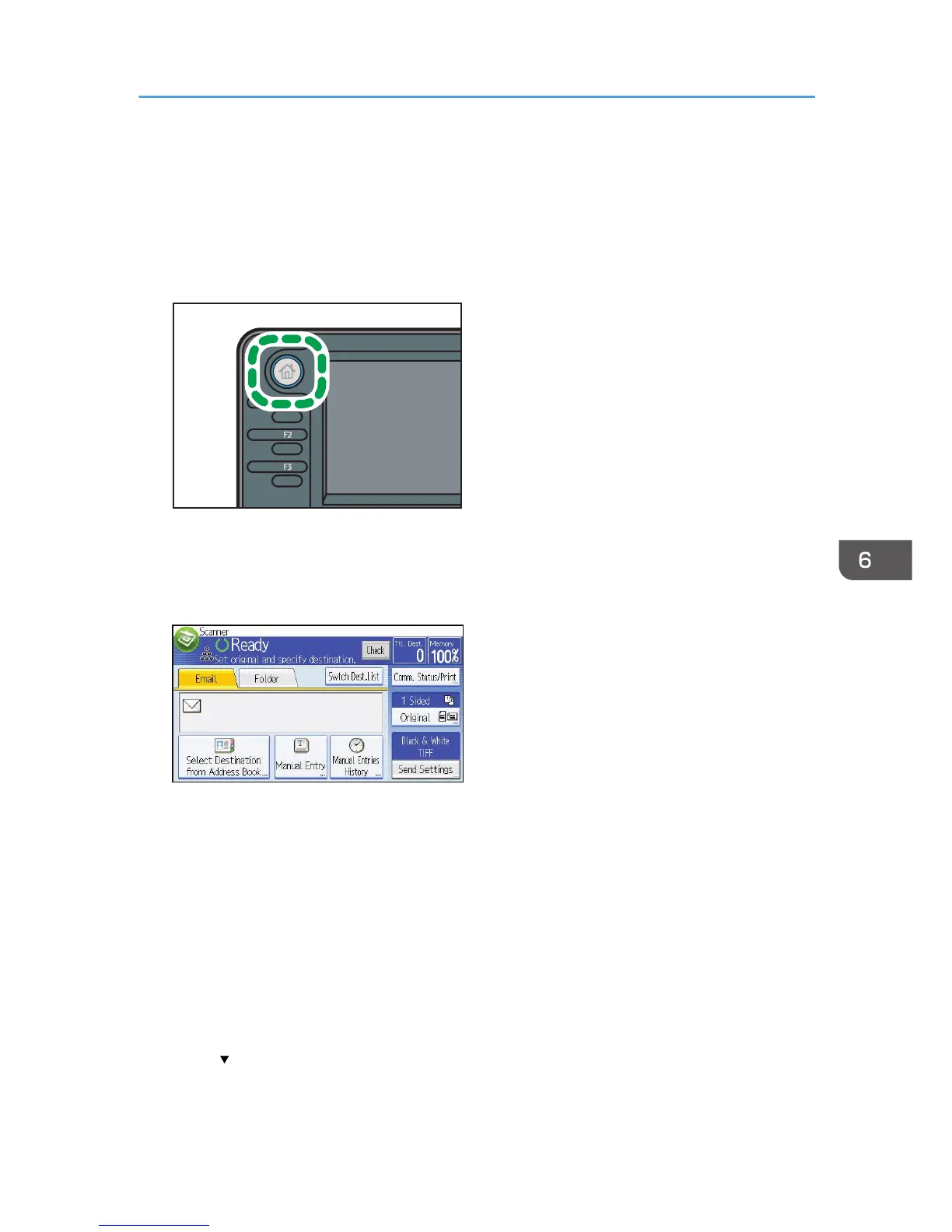 1. Press the [Home] key on the top left of the control panel, and press the [Scanner] icon on