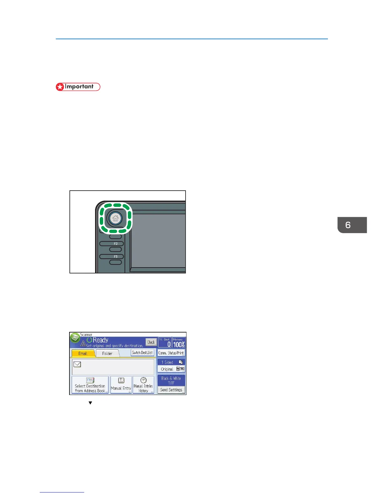 1. Press the [Home] key on the top left of the control panel, and press the [Scanner] icon on