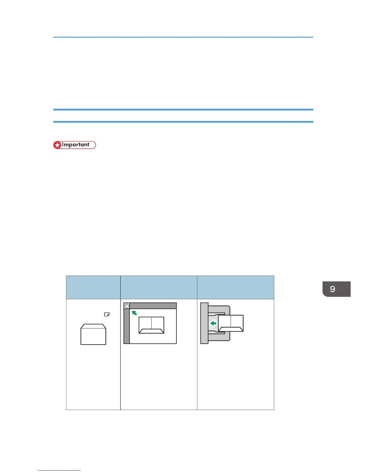 When copying onto envelopes, load them according to the applicable orientation shown below.