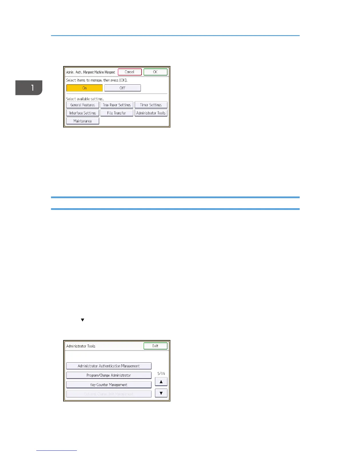 If administrator authentication has been specified, we recommend only one person take each