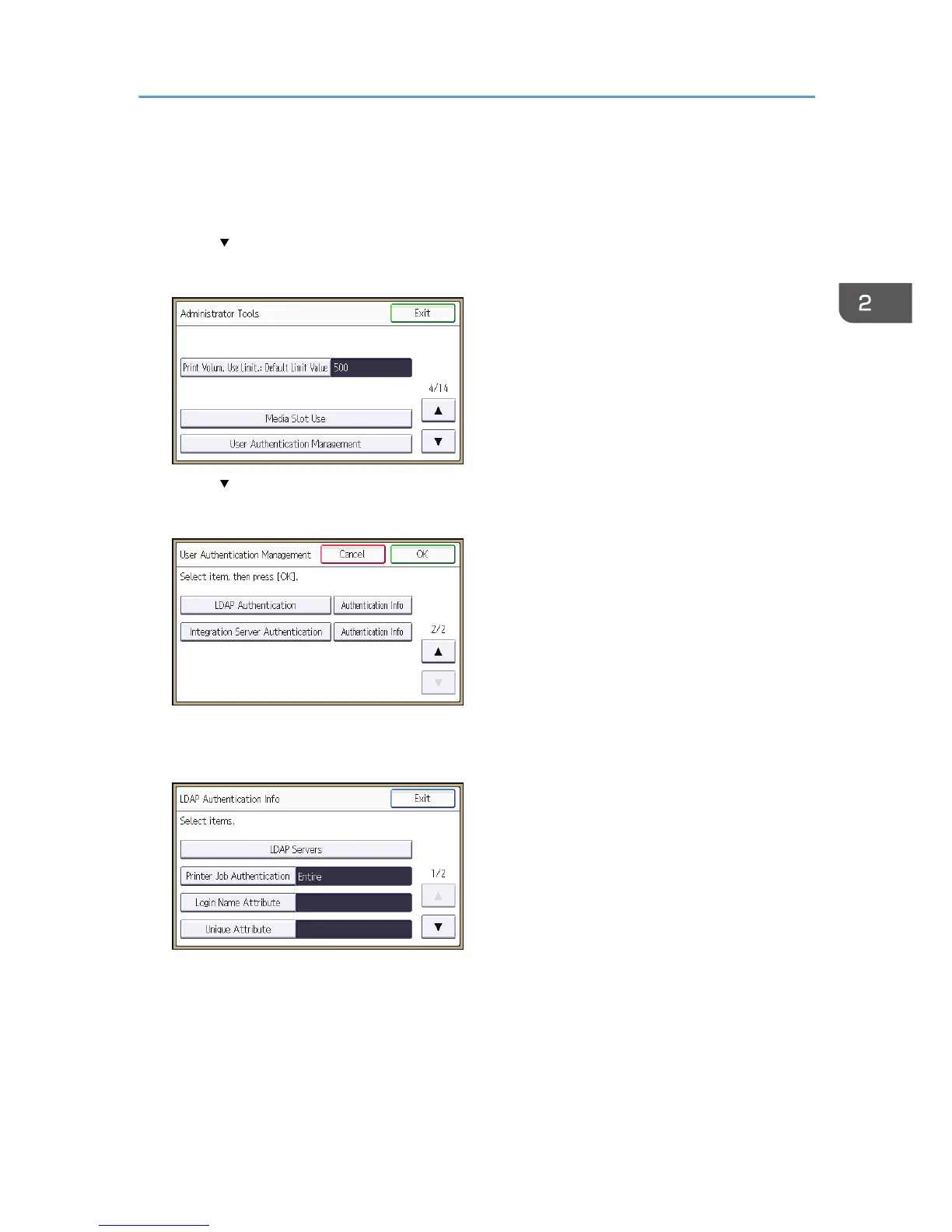 7. Select [LDAP Authentication], and then press [Authentication Info] next to it.