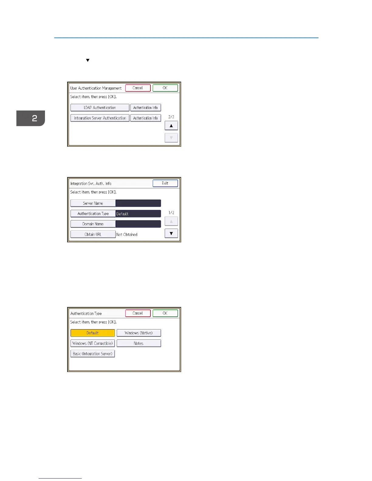 7. Select [Integration Server Authentication], and then press [Authentication Info] next to it.
