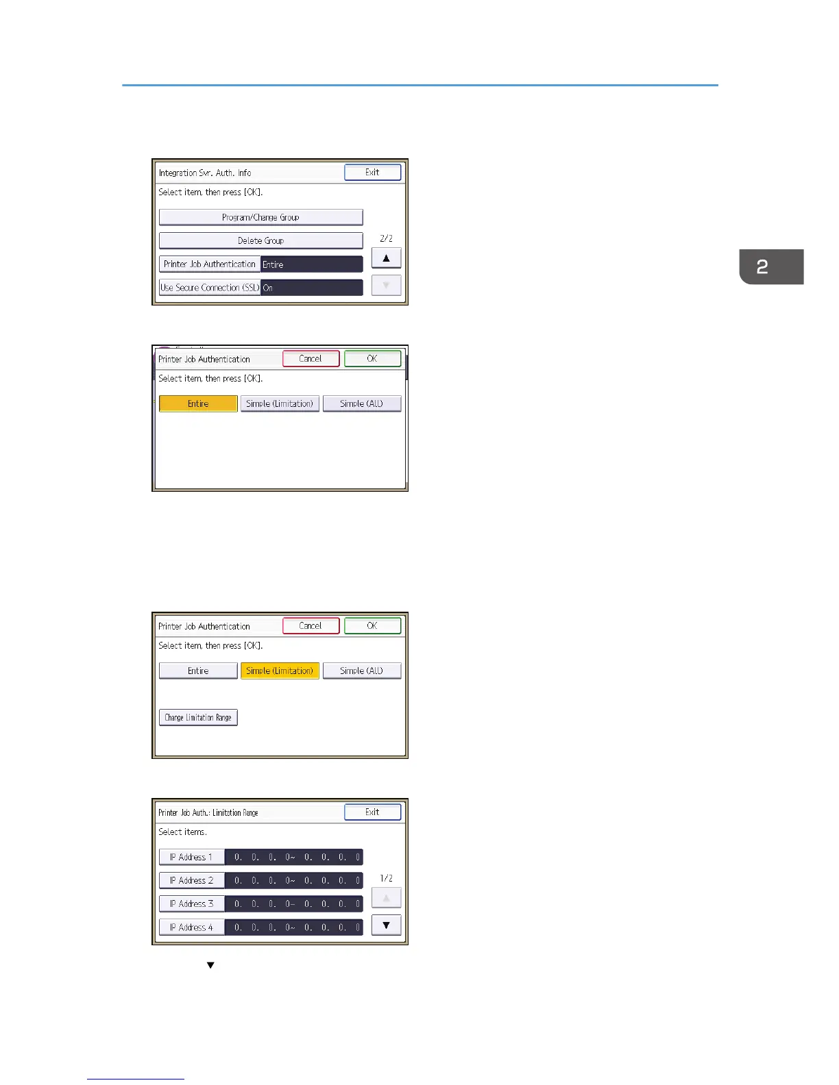 27. Specify the range in which [Simple (Limitation)] is applied to "Printer Job Authentication".