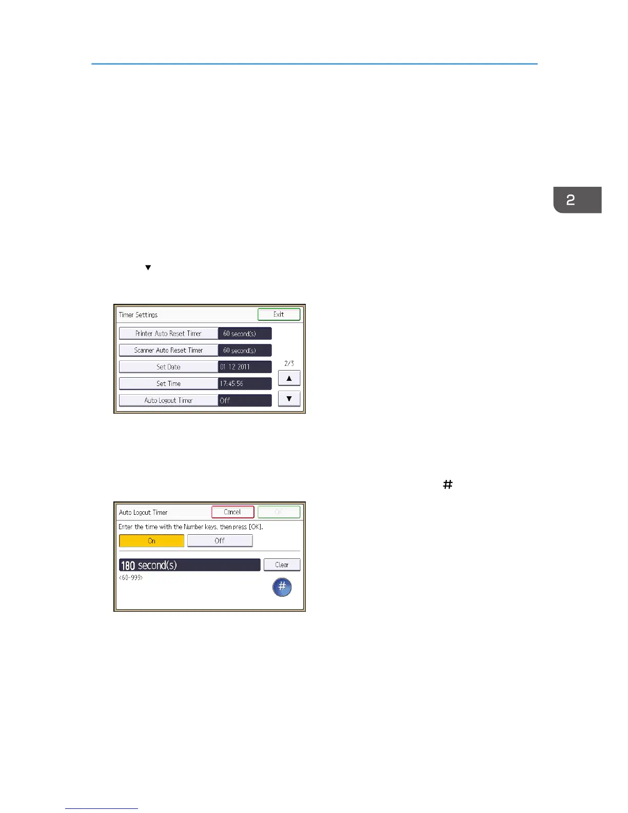If you do not want to specify [Auto Logout Timer], select [Off].