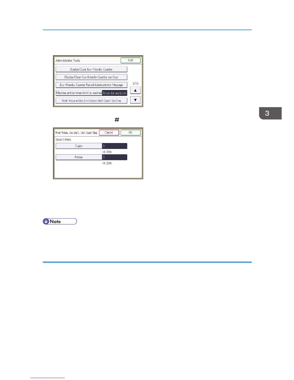 • Limitations for print volume can also be specified in [Print Volume Use Limitation] under