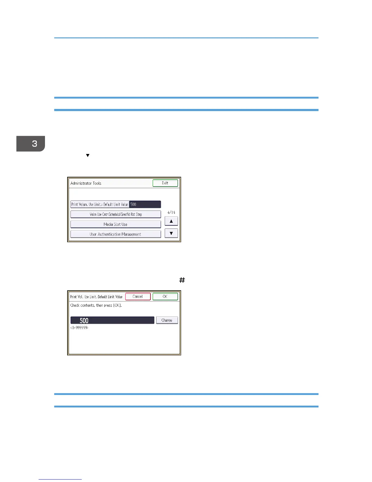 5. Press [Print Volum. Use Limit.: Default Limit Value].