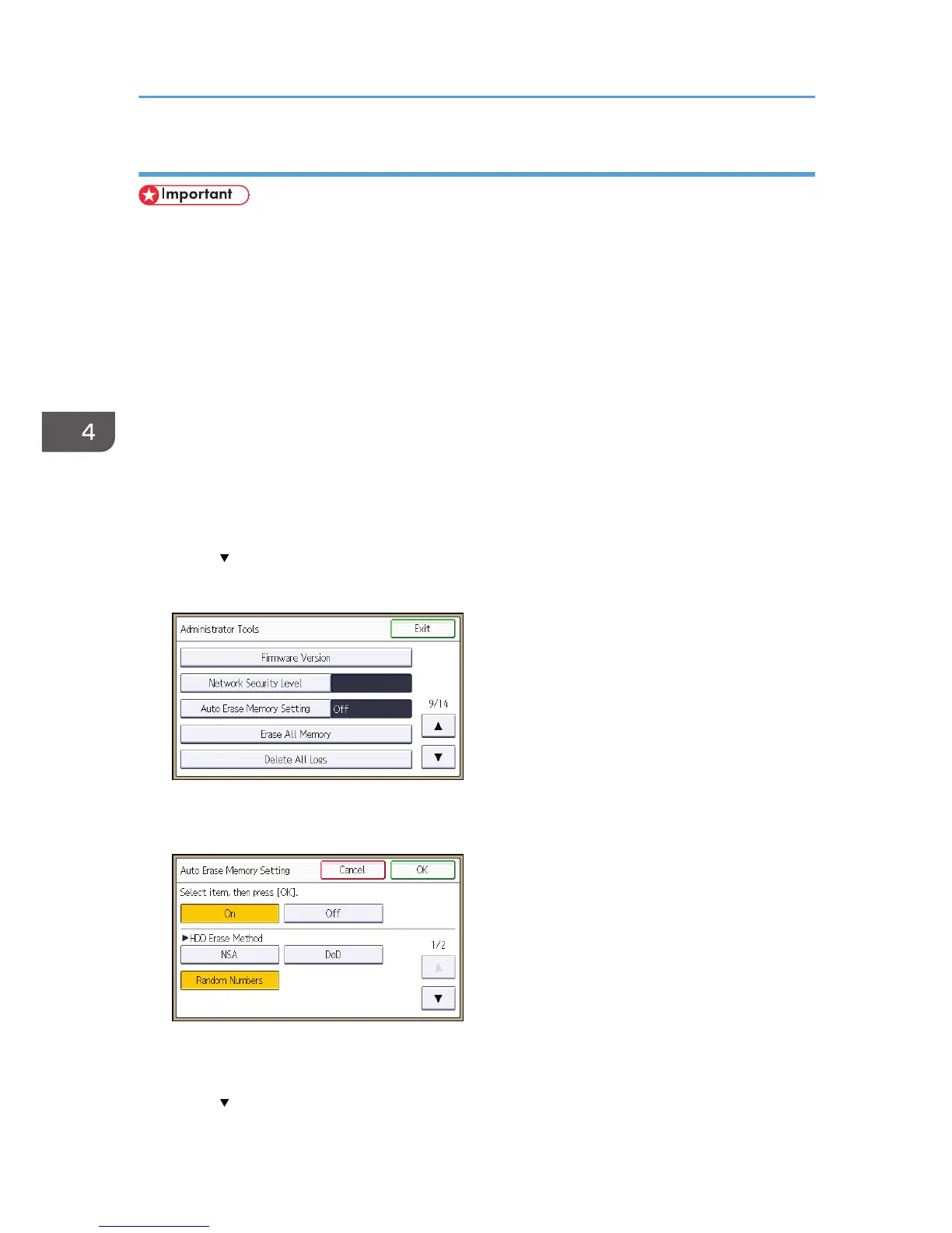 • When Auto Erase Memory is set to [On], temporary data that remained on the hard disk when