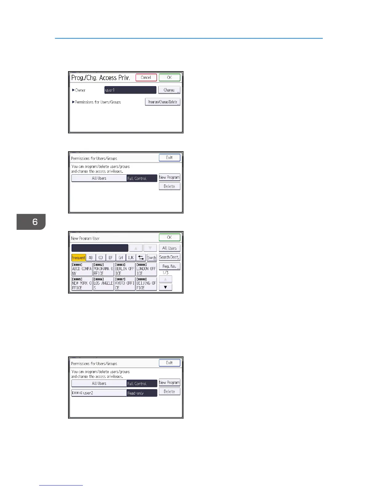 8. Press [Program/Change/Delete] for "Permissions for Users/Groups".