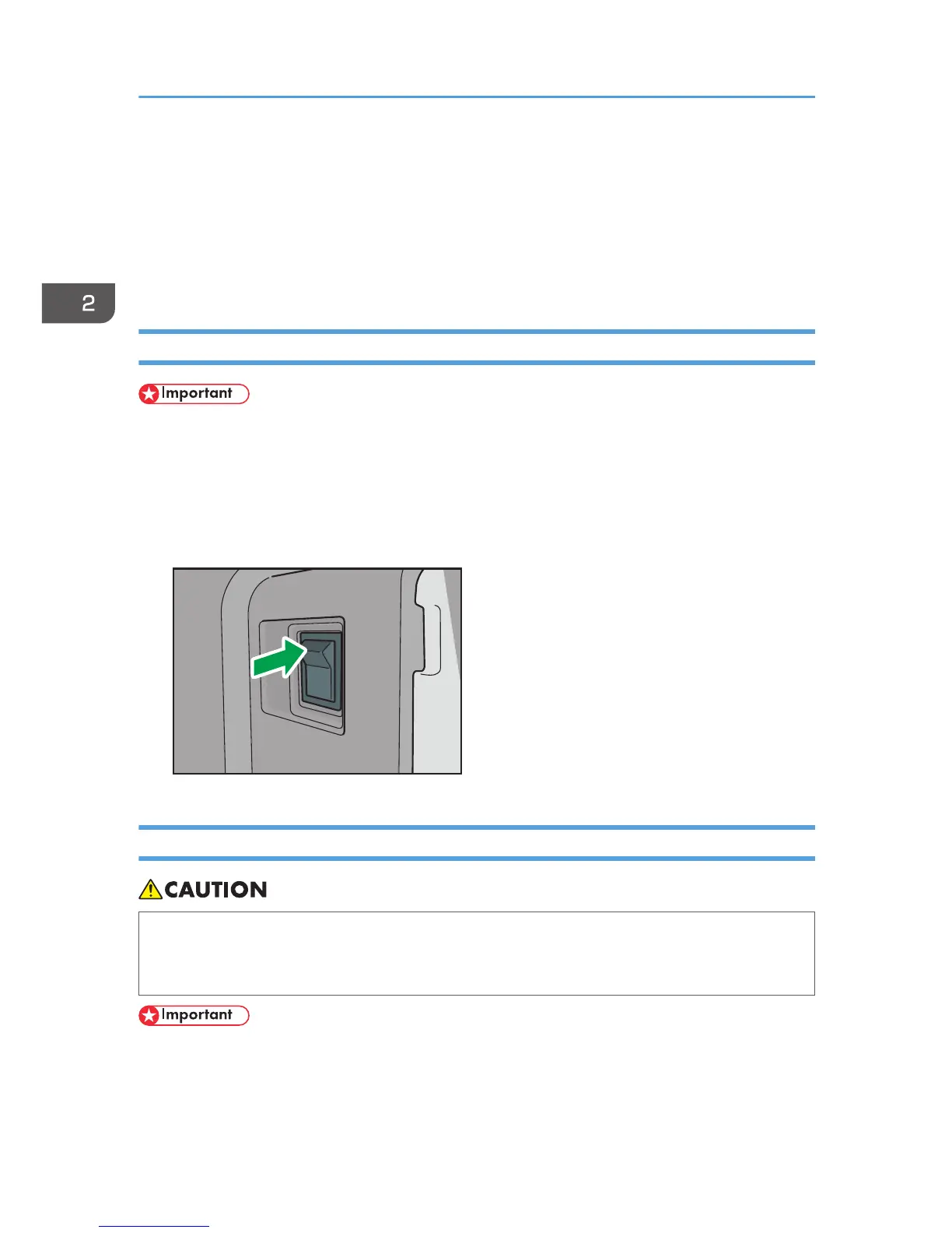 • Do not turn off the main power switch immediately after turning it on. Doing so may result in
