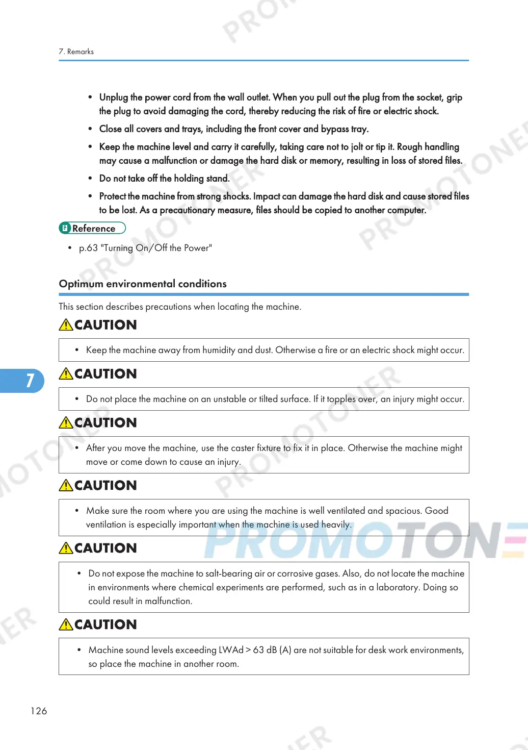 Protect the machine from strong shocks. Impact can damage the hard disk and cause stored files