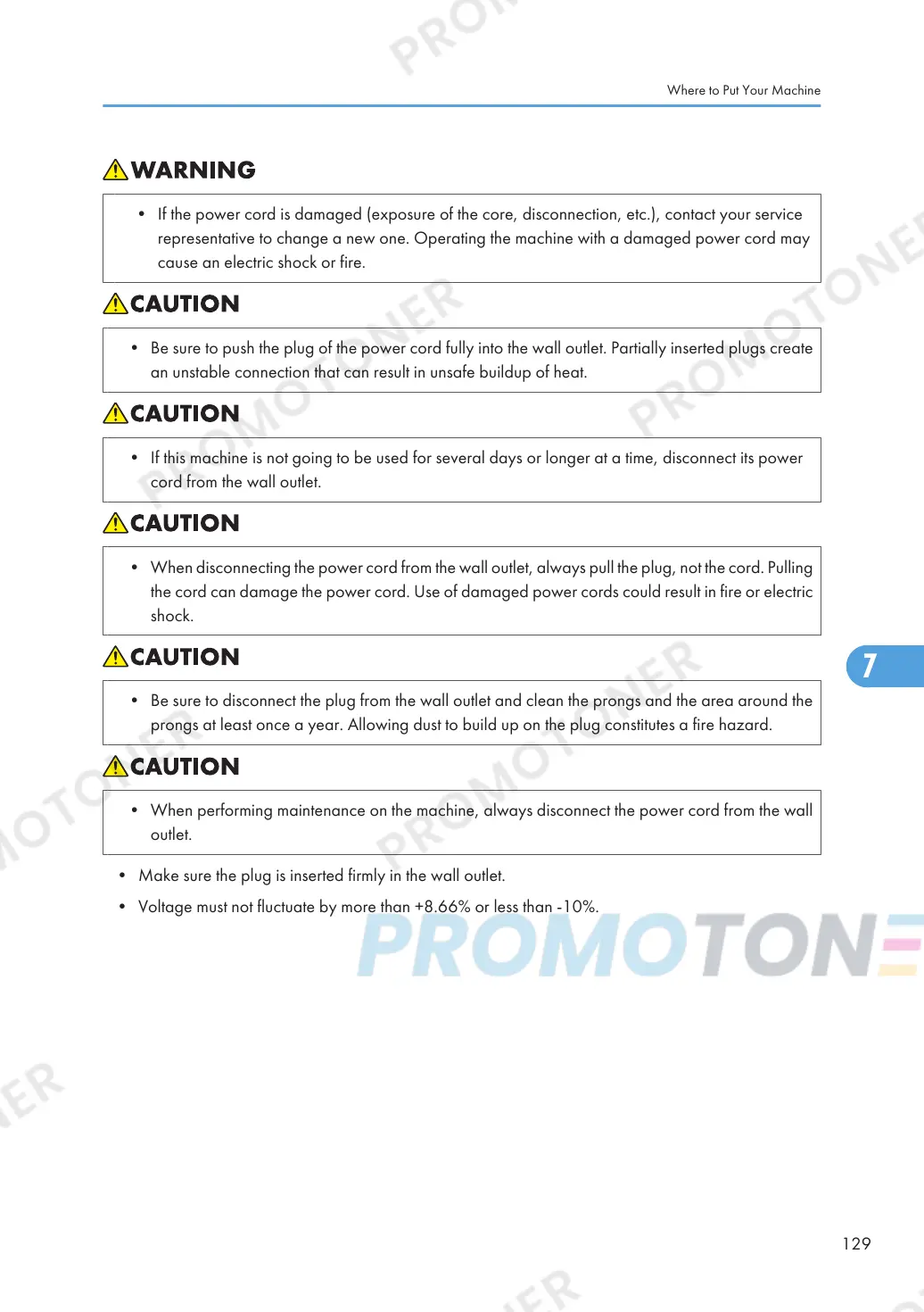 representative to change a new one. Operating the machine with a damaged power cord may