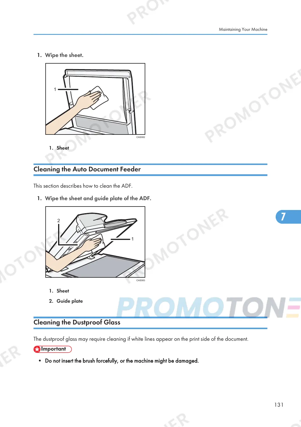 1. Wipe the sheet and guide plate of the ADF.