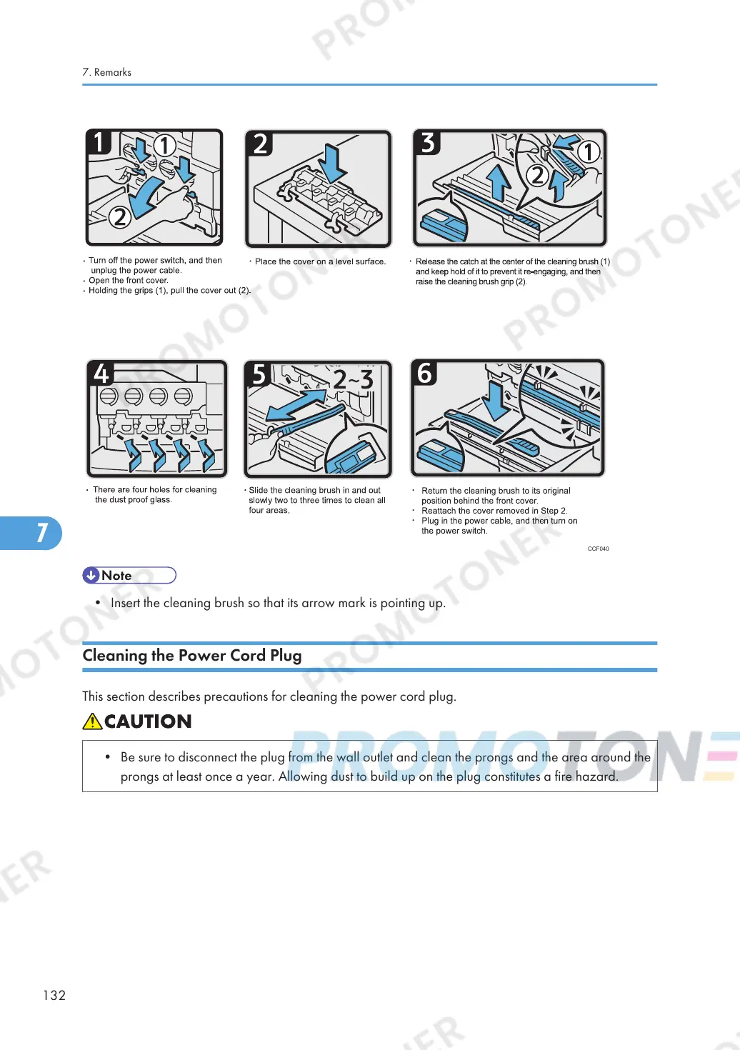 prongs at least once a year. Allowing dust to build up on the plug constitutes a fire hazard.
