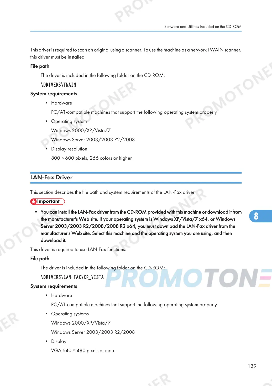 This driver is required to scan an original using a scanner. To use the machine as a network TWAIN scanner,