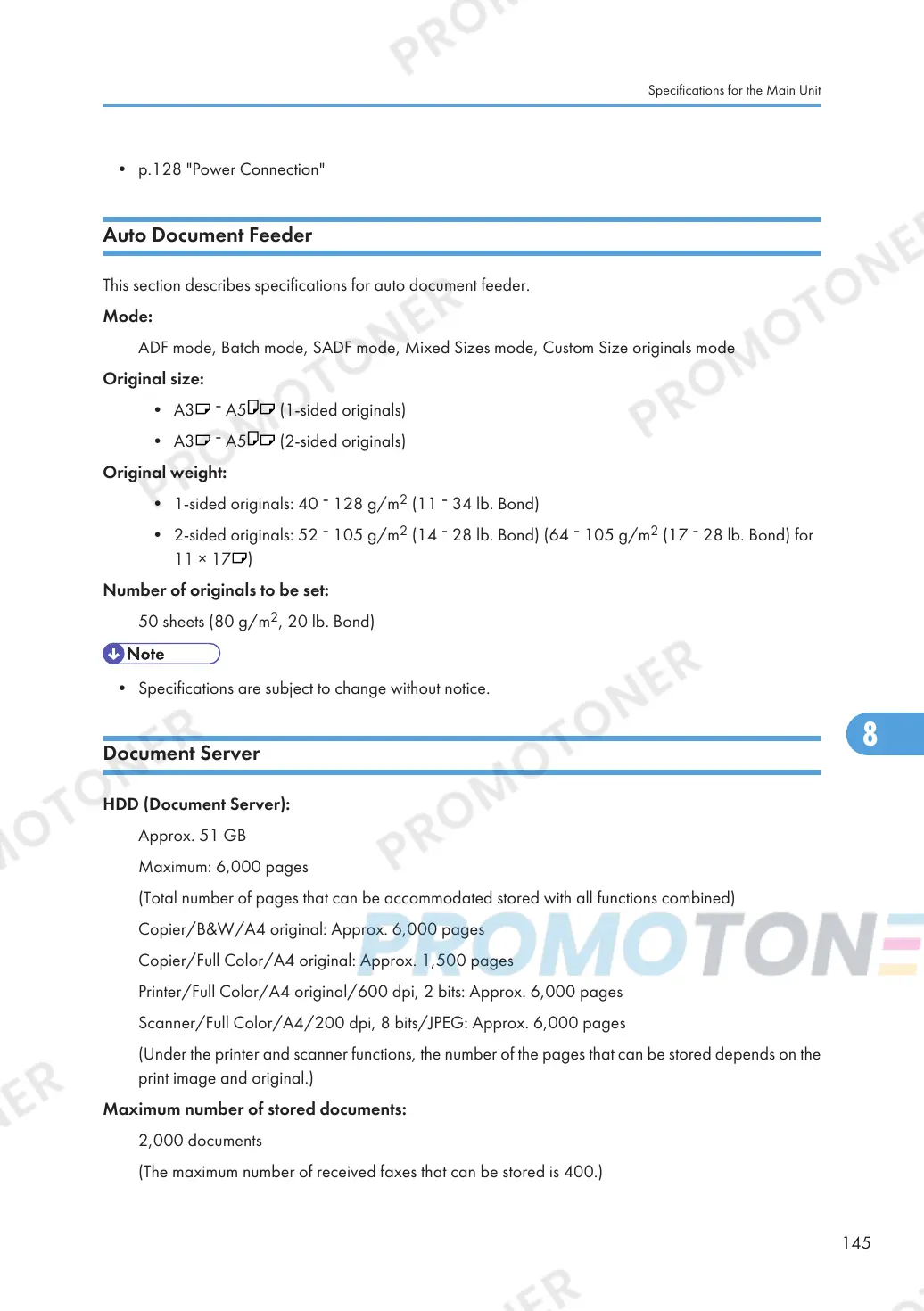Scanner/Full Color/A4/200 dpi, 8 bits/JPEG: Approx. 6,000 pages