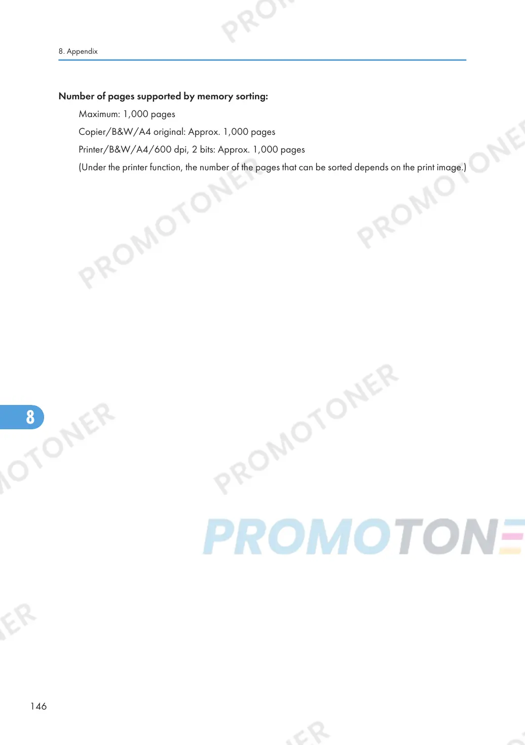 (Under the printer function, the number of the pages that can be sorted depends on the print image.)