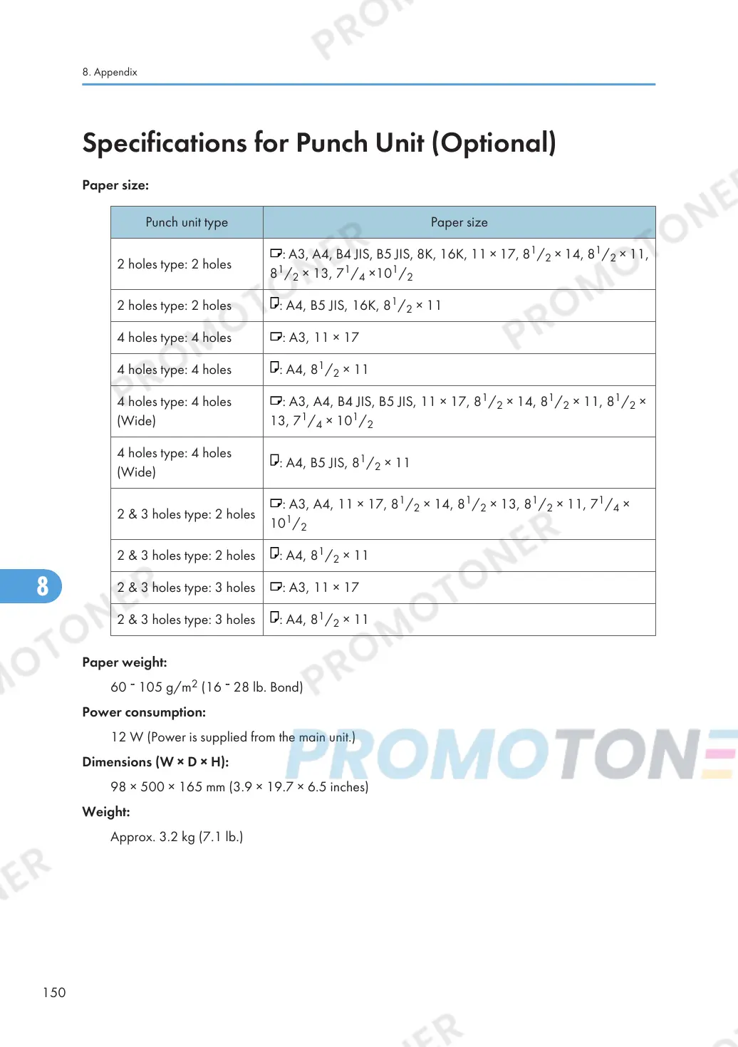 2 holes type: 2 holes : A4, B5 JIS, 16K, 8